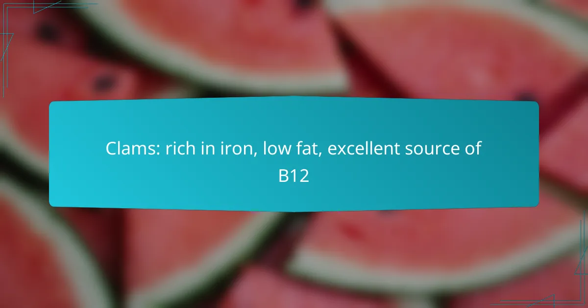Clams are a nutritious seafood choice, celebrated for their high iron content, low fat, and excellent source of vitamin B12. Incorporating clams into your diet can significantly enhance your overall health, particularly for those looking to increase their intake of these essential nutrients.
